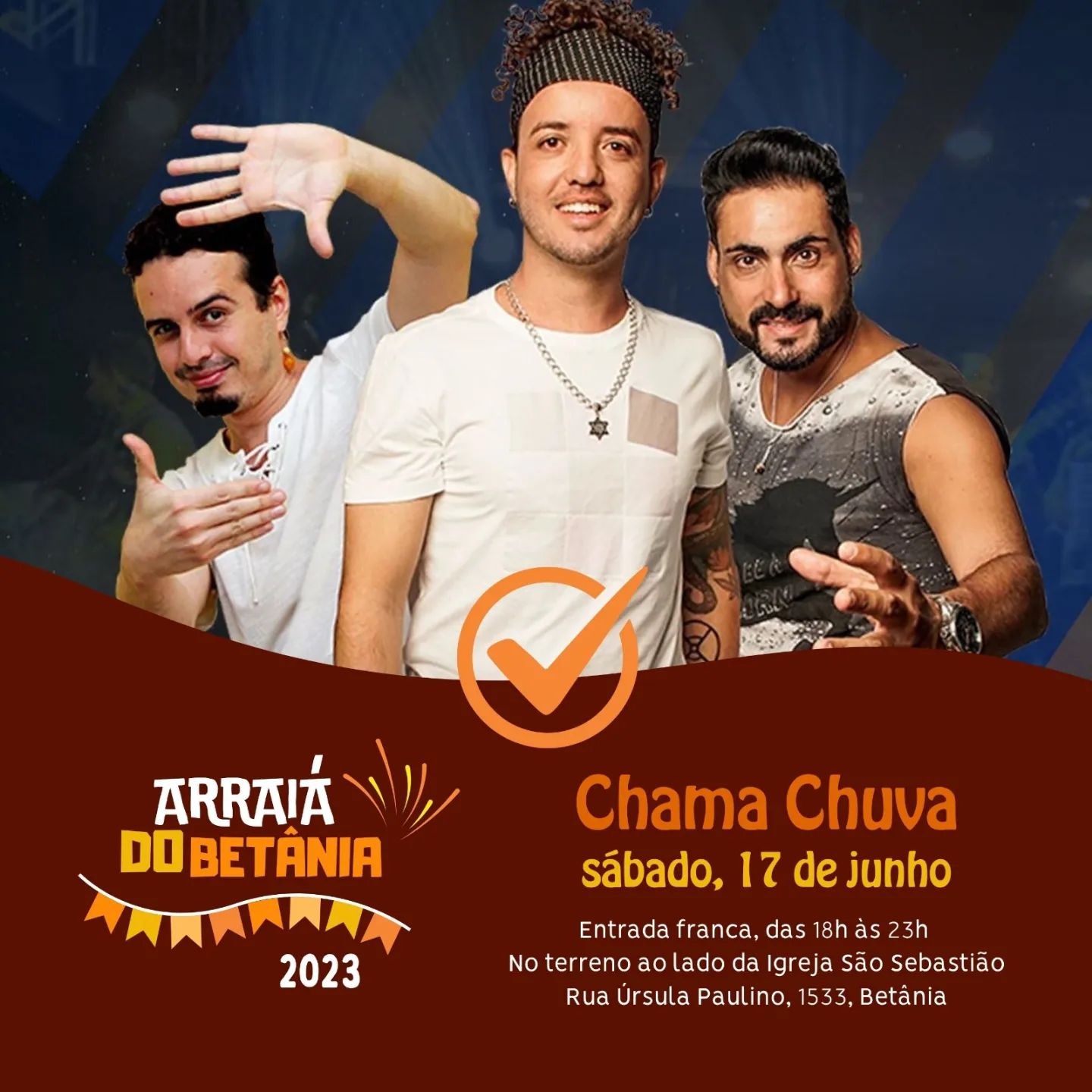 No dia 17 de junho, o grupo Chama Chuva é a atração do Arraiá do Betânia. Chame os amigos e familiares porque vai ser " bão dimais da conta sô".