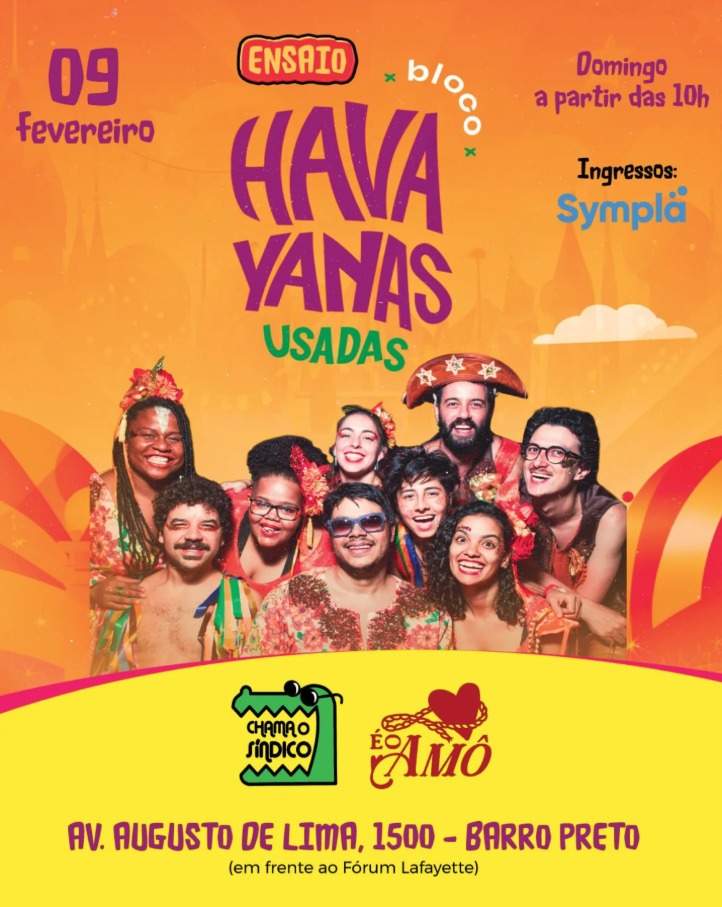No dia 09 de fevereiro acontecerá um ensaio especial, na Av. Augusto de Lima, 1500. A participação é gratuita e terá uma participação do bloco É o Amô.