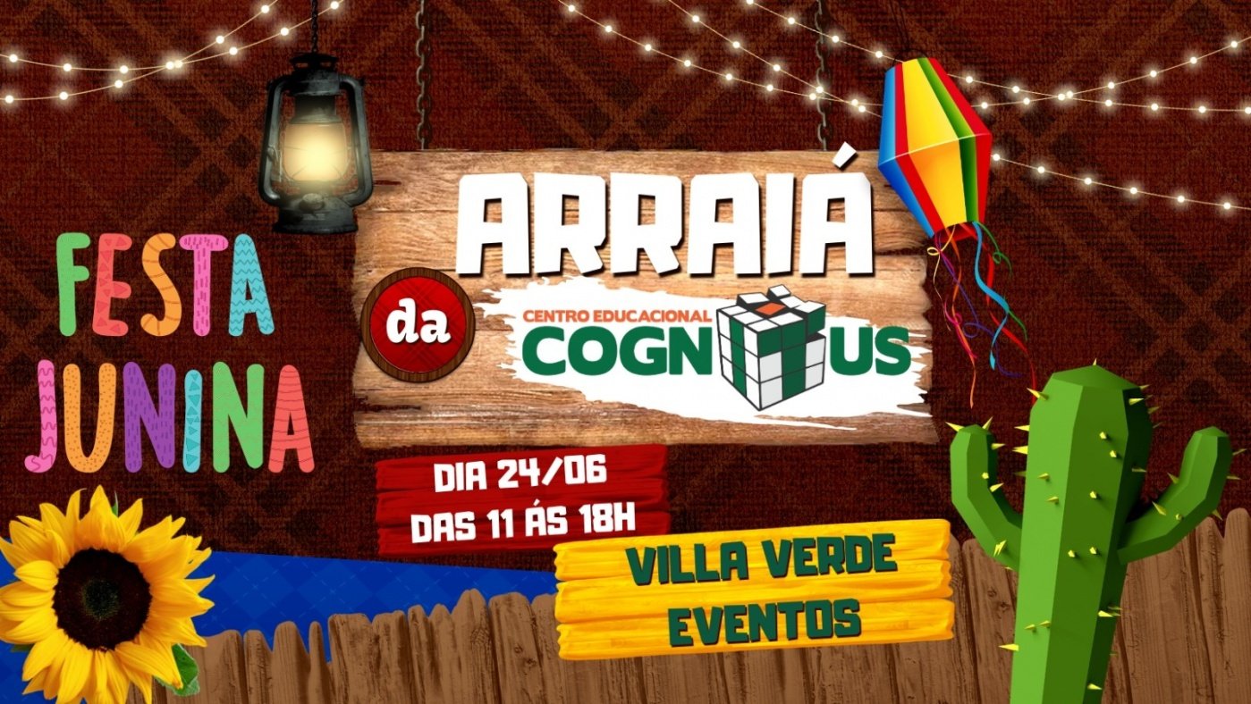 O Arraiá Cognitus será no dia 24 de junho das 11 às18 horas! Traga sua família, amigos e venha prestigiar este evento!