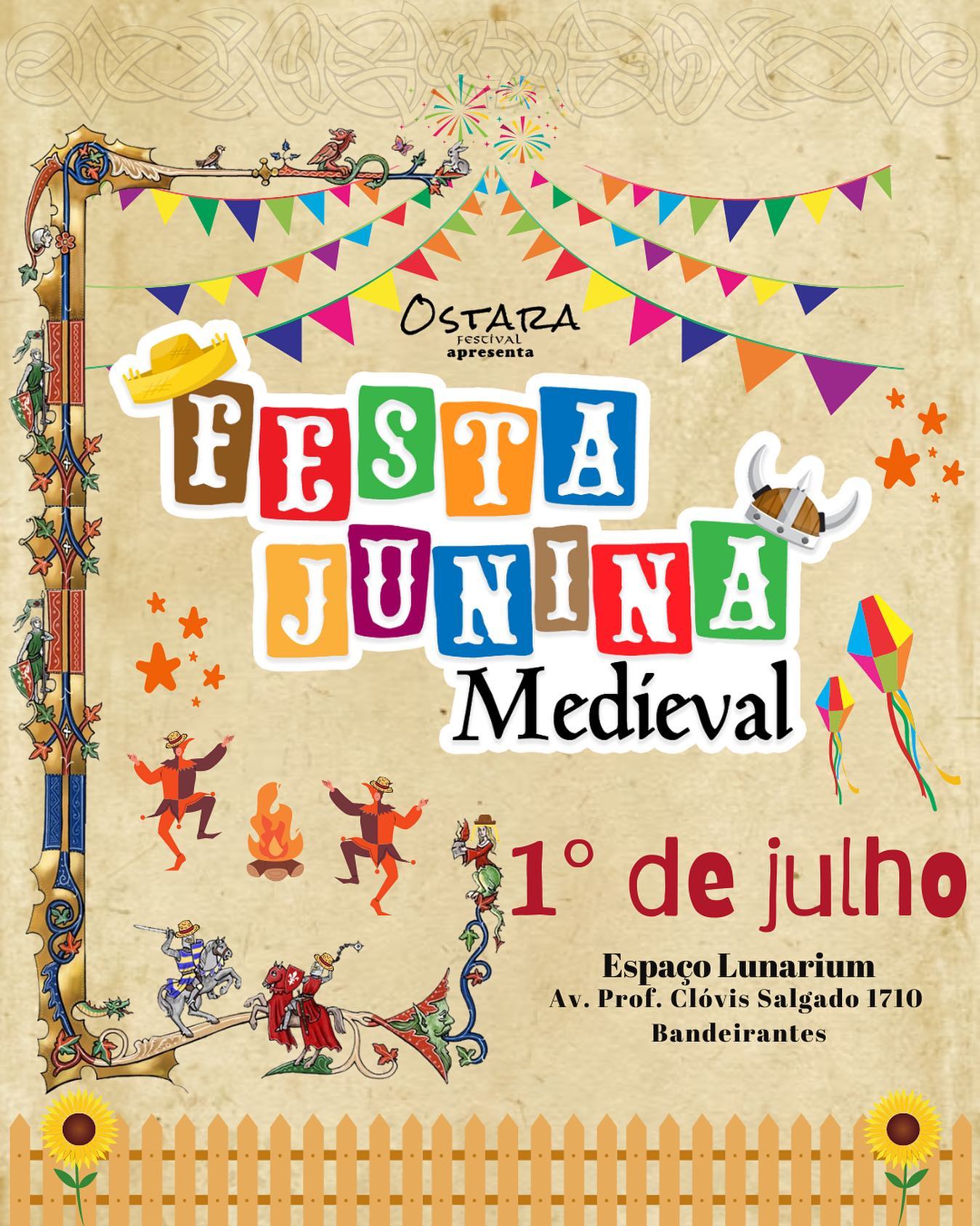 O evento terá comidinhas e bebidas típicas juninas, mas com um toquinho medieval; pra se divertir, jogos de arraiá com um pézinho nos mundos de fantasia; pra dançá e curtir, terá uma quadrilha medieval, apresentações de dança e shows com as bandas Taverna, McMiners e Mariana Roque e as Ofélias!
