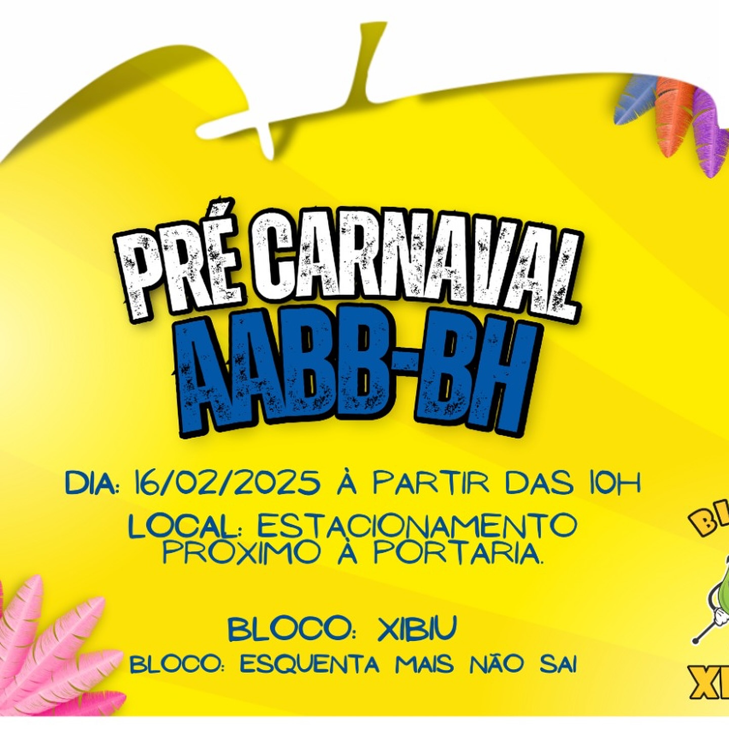 No dia 16 de fevereiro, domingo a partir das 10h, vai acontecer o Pré-Carnaval da AABB-BH. A partir das 11h30 acontecerá o Apresentação do Bloco e logo em seguida terá a apresentação da banda. O evento será no estacionamento ao lado da portaria e é uma ótima opção para aqueles que queiram aproveitar a festa e entrar no clima do carnaval de Belo Horizonte.