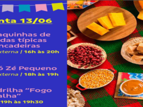 O evento ainda conta com barracas de comidas, bebidas e brincadeiras típicas, que ficam abertas nos dias 13 e 14/06 (quinta e sexta), das 16h às 20h, e nos dias 15 e 16/06 (sábado e domingo), das 11h às 20h.