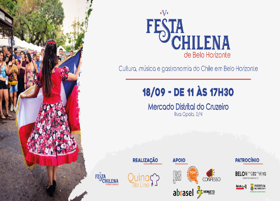 A Festa Chilena de BH chega à sua quinta edição trazendo o melhor da música, dança, gastronomia, artesanato e toda a cultura do Chile para Belo Horizonte. Depois de dois anos de ausência devido à pandemia de Covid-19 (mas com uma edição virtual), o evento está de volta 100% presencial, e com uma programação imperdível.
