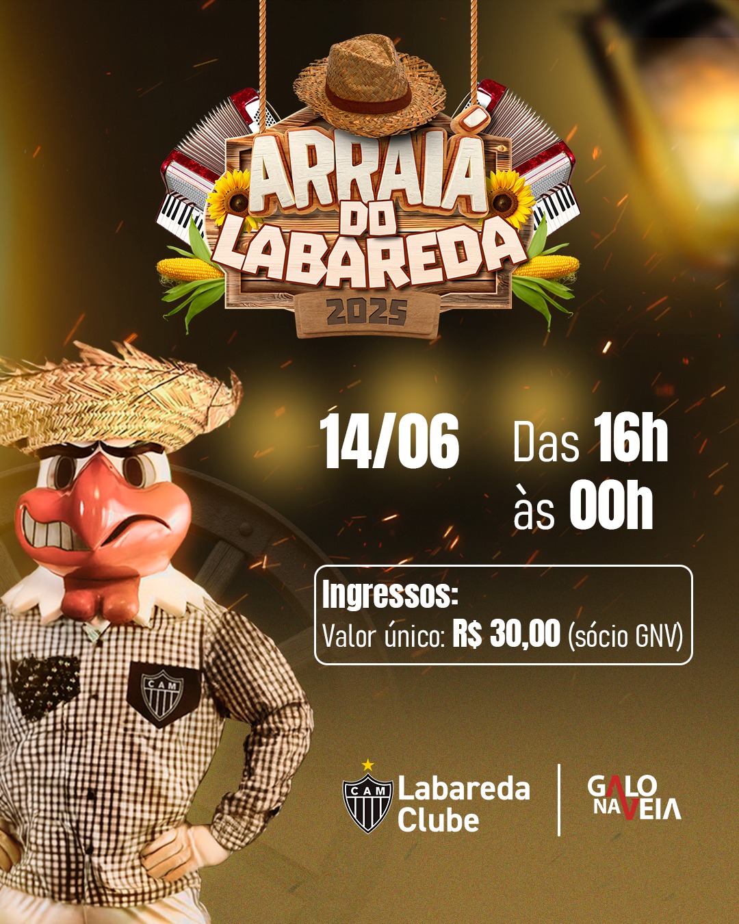 O Clube Labareda confirmou a data de sua festa junina. Será no próximo dia 14 de junho, sábado, entre 16h e meia-noite. Uma super festa com diversas atrações musicais, comidas típicas e decoração especial.