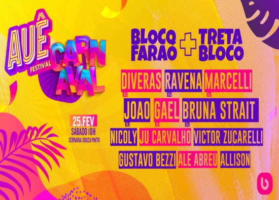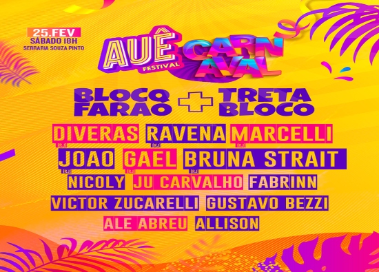 Dia 25/2, o AUÊ vem com tudo em sua edição especial de CARNAVAL com várias atrações em uma super edição do nosso FESTIVAL!