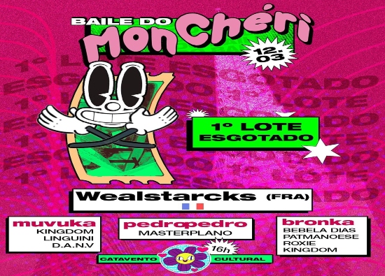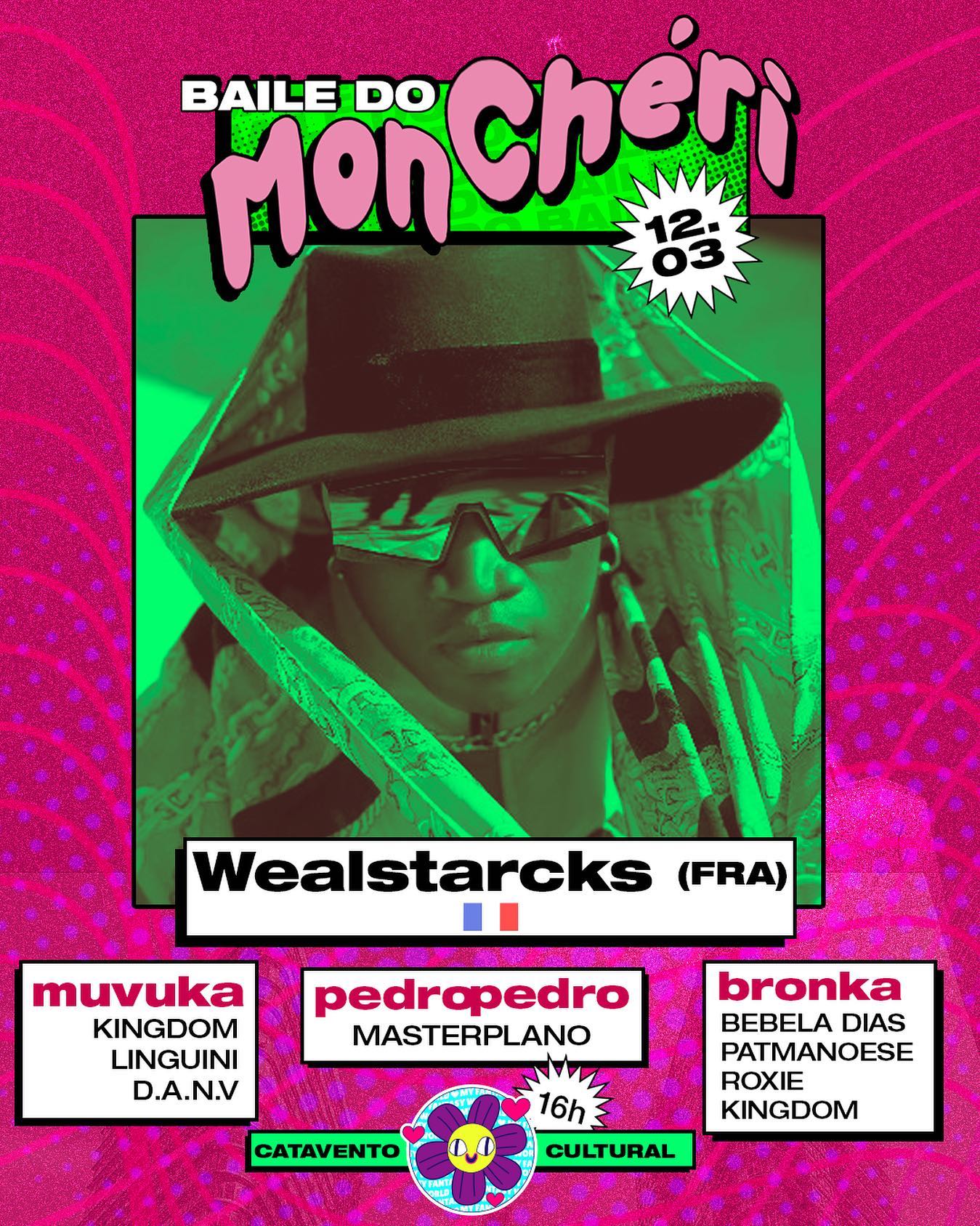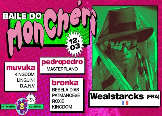 Sucesso em pistas pelo mundo com samples de músicas brasileiras, o parisiense Wealstarcks chega a Belo Horizonte como atração principal no Baile do Mon Chéri, neste domingo (12/03) a partir das 16h no Catavento Cultural (Rua Ozanam, 711 - Ipiranga).