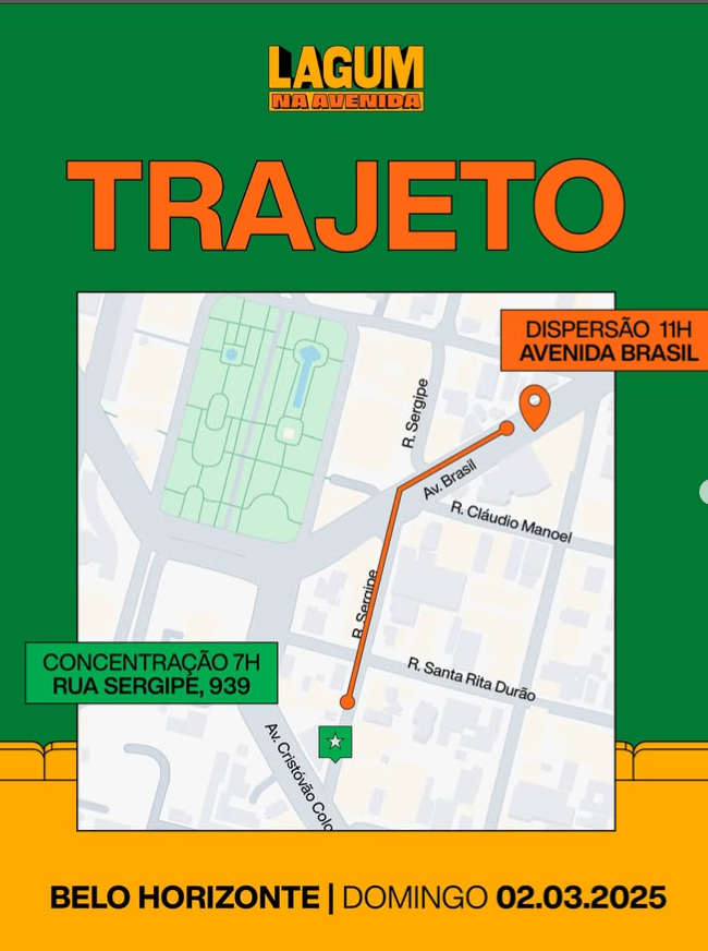 A concentração será às 7h, na Rua Sergipe, próximo à Praça da Liberdade, e o bloco vai percorrer a Avenida Brasil, fazendo o mesmo trajeto da primeira edição.