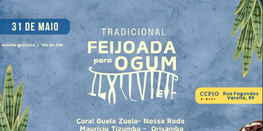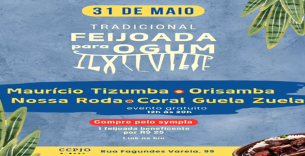 No dia 31 de maio, sábado, a Casa de Caridade Pai Jacob do Oriente (CCPJO) realiza sua tradicional Feijoada Beneficente para Ogum, celebrando a força, coragem e proteção do dono dos caminhos – uma junção perfeita entre o sabor da feijoada e a energia ancestral que une a comunidade em um propósito de envolvimento e foco.