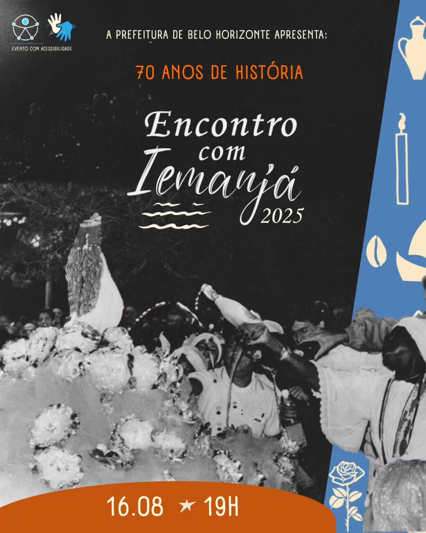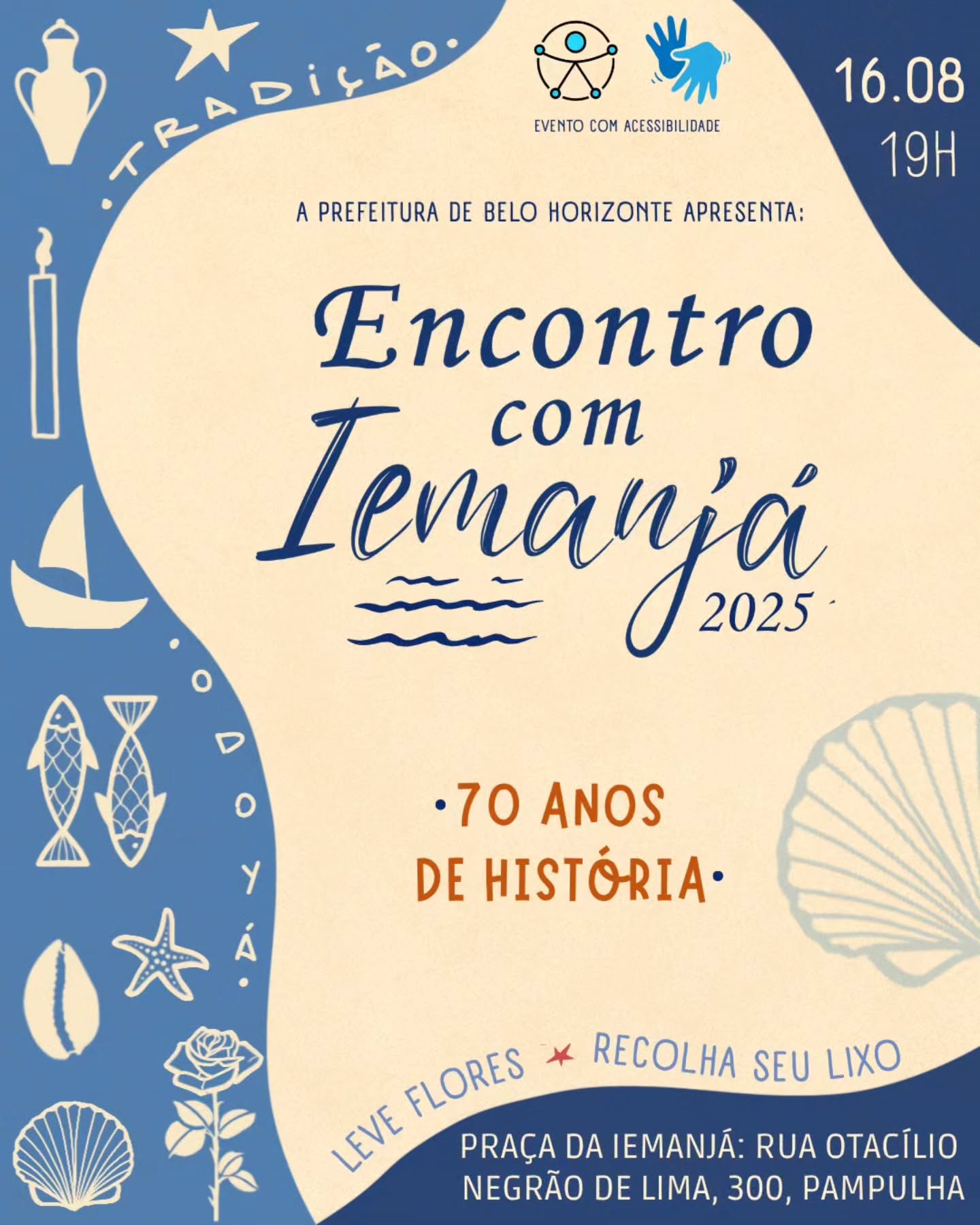 Belo Horizonte vai receber, no dia 16 de agosto, a tradicional Festa de Iemanjá, celebração da cultura afro-brasileira na Lagoa da Pampulha, realizada pela Casa de Caridade Pai Jacob do Oriente (CCPJO) em parceria com a Reunião Umbandista Mineira (RUM) e Centro Nacional de Africanidade e Resistência Afro-brasileira (CENARAB). Com raízes históricas, o evento acontece próximo ao dia 15, sincretismo religioso com as celebrações de Nossa Senhora da Boa Viagem, padroeira da cidade.
