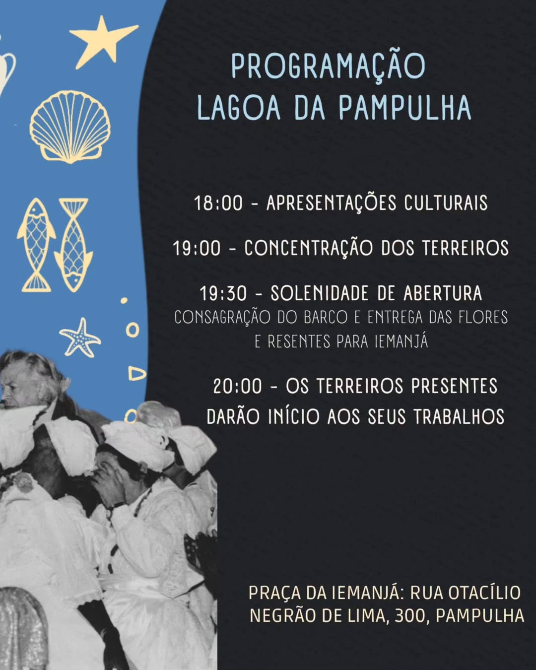 Essa celebração completa 70 anos em 2025, reunindo diversos terreiros de Umbanda e Candomblé, num momento de resistência e afirmação da cultura afro. Realizada anualmente desde 1953, a Festa de Iemanjá revela o sagrado no espaço urbano. A ocupação e a permanência dos adeptos da Umbanda e do Candomblé, há sete décadas, atribuíram novos sentidos e significados para a Pampulha, um espaço tradicional da cidade contribuindo para uma apropriação plural e democrática do espaço público.