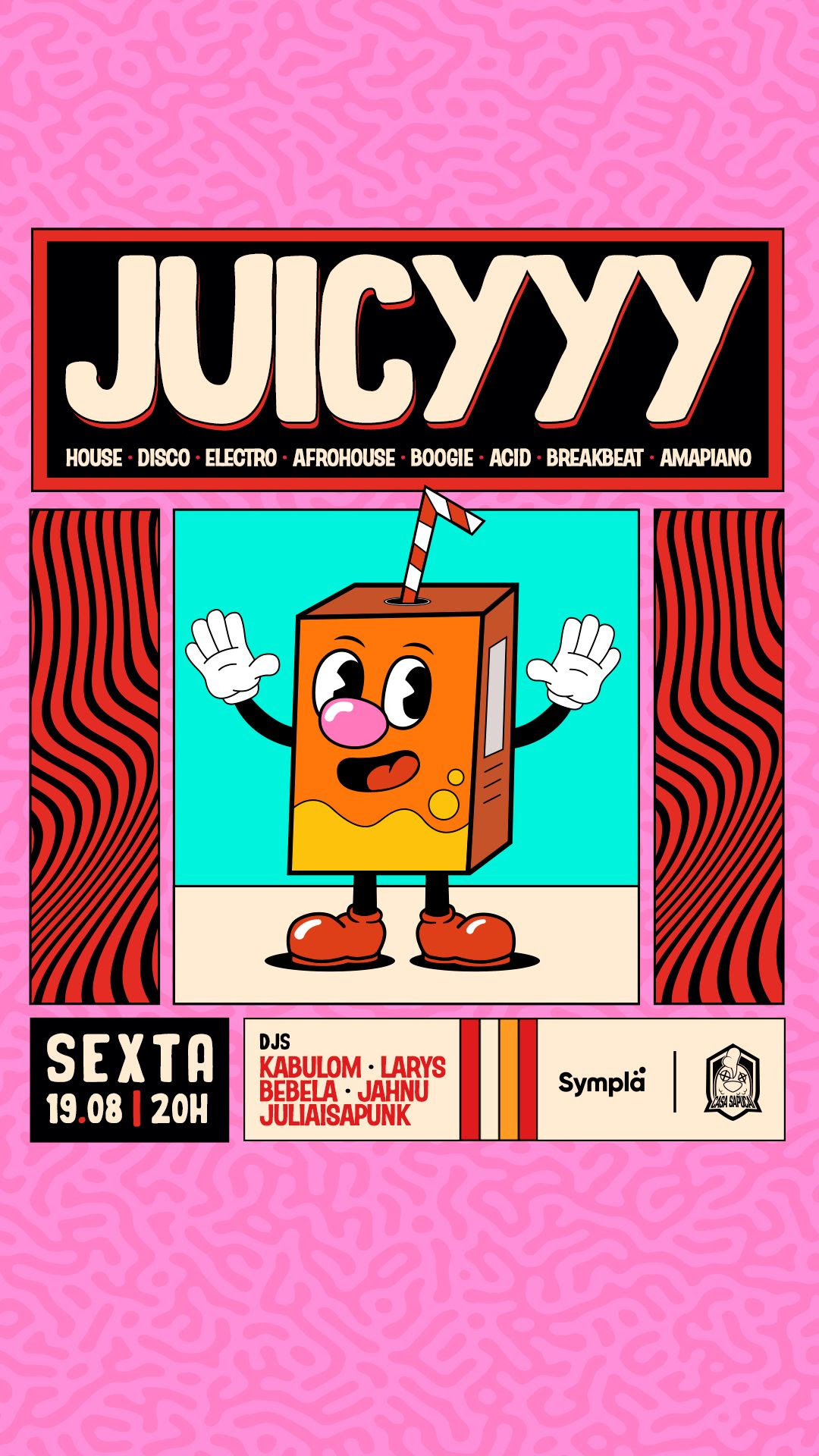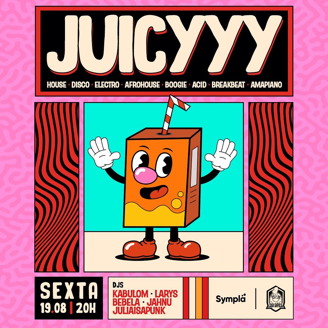 Com uma seleção de DJs que carregam consigo o espírito do House, Disco, Electro, Afrohouse, Boogie, Acid, Breakbeat e Amapiano, a festa “Juicyyy” promete trazer o melhor desse universo, contemplando a essência groove dos gêneros em sua totalidade.