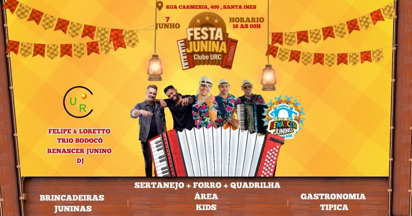 Peguem seus trajes e venham dançar, porque o Clube URC vai tremer com o Arraiá Junino! Um evento cheio de alegria, segurança e muito entretenimento para toda a família!