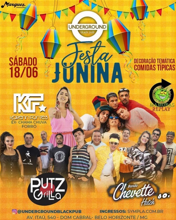 A tradicional Festa Junina do Underground Pub está de volta! Será no dia 18/06 (sábado), com comidas típicas, decoração temática e shows!⠀⠀⠀*Atrações:⠀- Banda Putzgrilla⠀- Banda Chevette Hatch⠀- Mamonas Replay⠀- Karenn Fontes⠀⠀