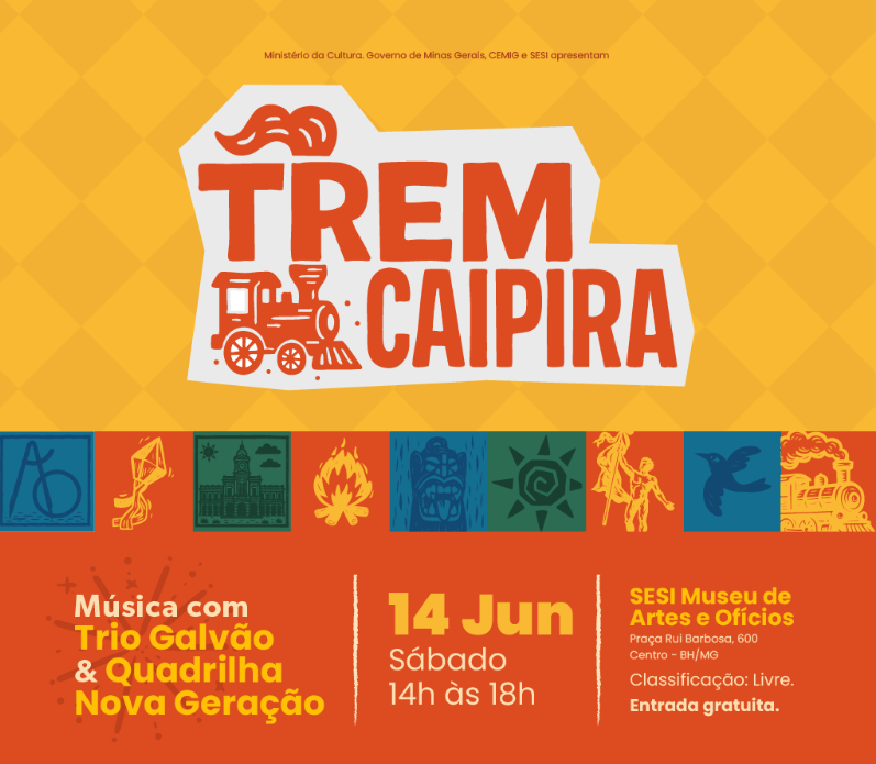 O mês de junho marca o retorno das festas populares em todo o país, e em Belo Horizonte não será diferente. No sábado, dia 14 de junho, o SESI Museu de Artes e Ofícios realiza o Trem Caipira, uma tarde dedicada à cultura junina com atrações para toda a família. O evento acontece das 14h às 18h, com entrada gratuita e classificação livre. O espaço será transformado em uma estação de celebração popular com apresentações de forró, dança e barracas com comidas tradicionais.