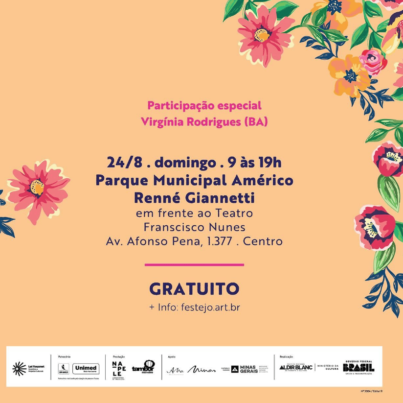 No dia 24 de agosto de 2025 (domingo), das 9h às 19h, acontece o Festejo no Parque Municipal Américo Renné Giannetti, com participação especial de Virginia Rodrigues.