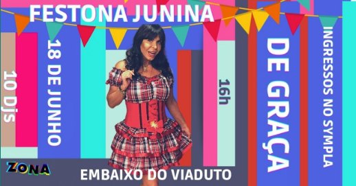 O bar Zona irá realizar uma festa junina. Apelidada de “Festona Junina”, o evento vai ocorrer em um local que é bastante conhecido: embaixo do viaduto Santa Tereza.