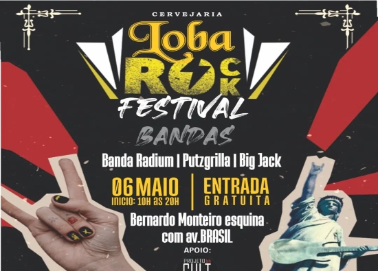 Vem ai o Loba Rock Festival, no dia 06 de maio de 10 às 20hs na Avenida Bernardo Monteiro esquina com Av. Brasil.