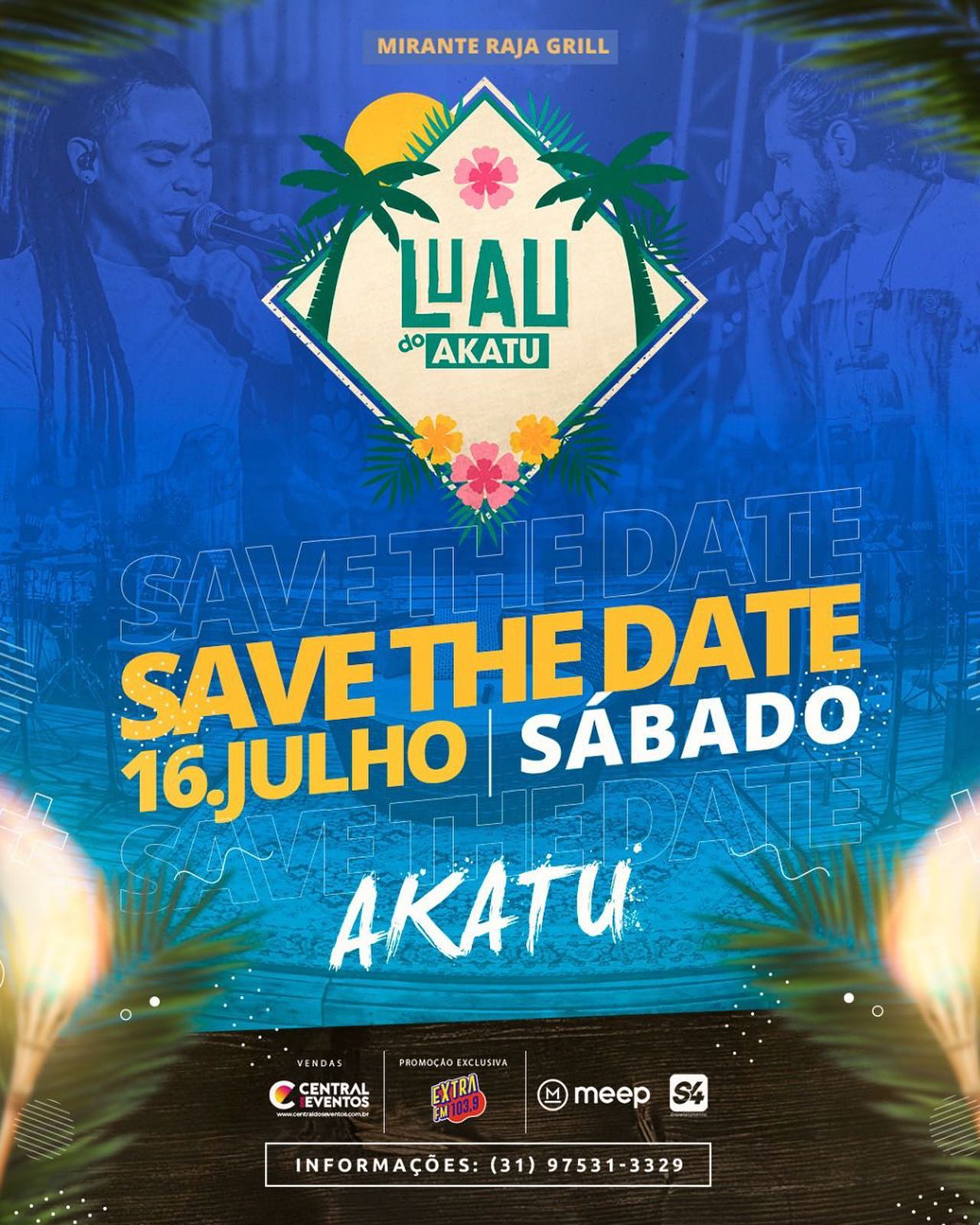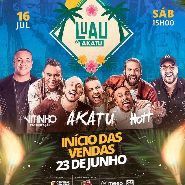Para a alegria dos fãs, o Akatu, grupo mineiro de samba e pagode formado por Ângelo (reco e voz), Caique (tantan e voz), Lucas (pandeiro), Lukas Gabriel (voz) e Beg (voz), se apresenta no dia 16 de julho, sábado, a partir das 15h, no Mirante Raja Grill, no tão esperado Luau do Akatu.