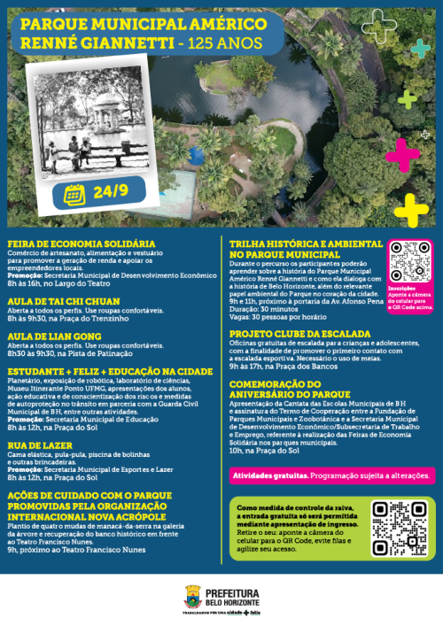 Durante o percurso os participantes poderão aprender sobre a história do Parque Municipal Américo Renné Giannetti e como ela dialoga com a história de Belo Horizonte, além do relevante papel ambiental do Parque no coração da cidade.