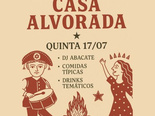 Na quinta feira, dia 17 de Julho acontecerá a Festa Julina da Casa Alvorada, que promete drinks temáticos e comidas típicas com aquele toque especial que só a Casa Alvorada sabe dar!