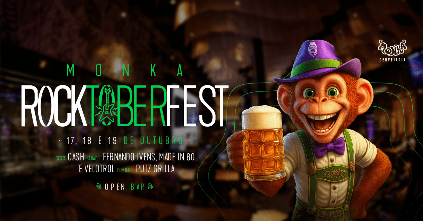 Do dia 17 a 19 de outubro, a Monka Cervejaria abre as portas para uma celebração inesquecível: o Monka Rocktoberfest. E o melhor: com Open Bar nos dias 17 e 18!