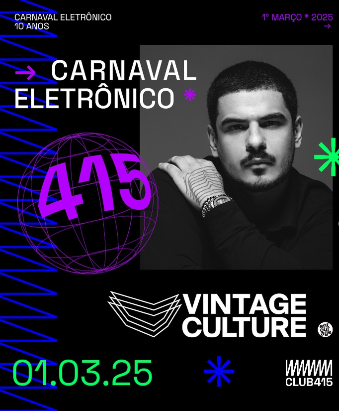 Dia 1º de março de 2025 tem Carnaval Eletrônico no Club415 - Edição especial de 10 anos.