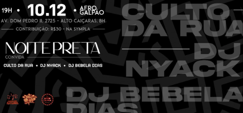O Noite Preta Convida nasce para celebrar e fortalecer a cultura preta por meio de uma programação diversa, que convida o público a dançar, refletir e reconhecer a potência das expressões negras. Reunindo artistas de Belo Horizonte e convidados de outros estados, o projeto estreia com nomes que representam a força e a pluralidade da cena preta contemporânea.
