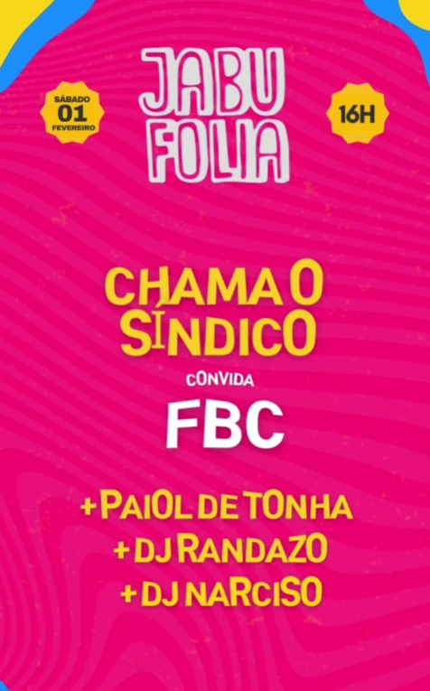 O evento contará com diversas atrações, o bloco Chama o Síndico convida o incrível FBC para fazer todo mundo dançar e cantar ao som de muito groove e energia.