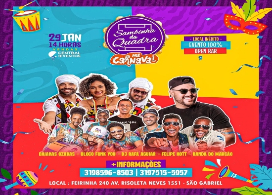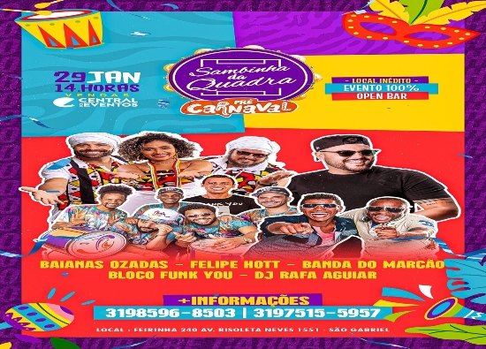 Atrações: Baianas Ousadas ( Maior Bloco de BH) Felipe Hot ( Arrastão do Hot ) Bloco FunkYou ( Maior Bloco de Funk) Banda do Marcão (Destaque Carnaval 2022)