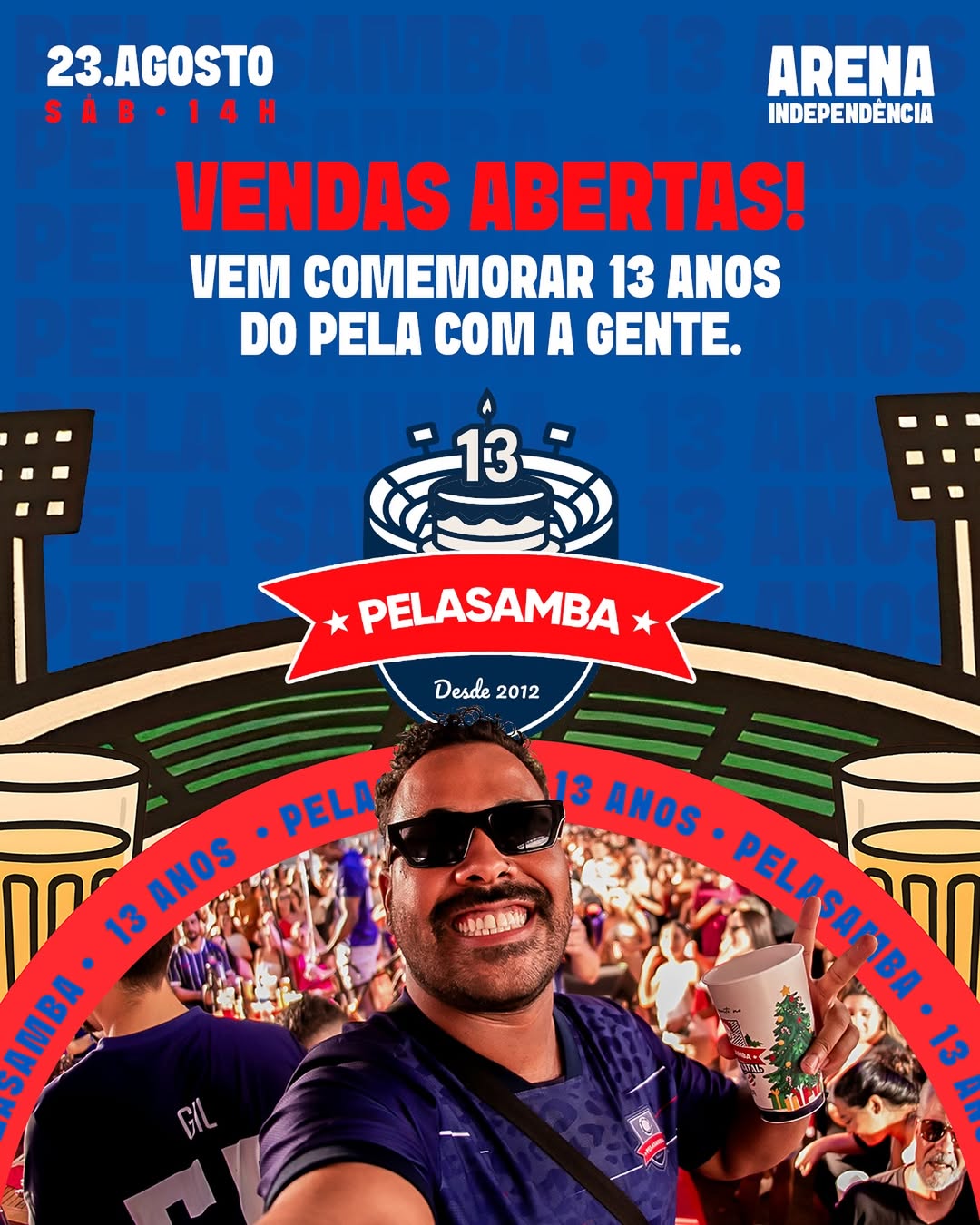 No dia 23/08, o PelaSamba comemora 13 anos em um cenário diferente, a Arena Independência e com grupo de pagode mais amado de BH!