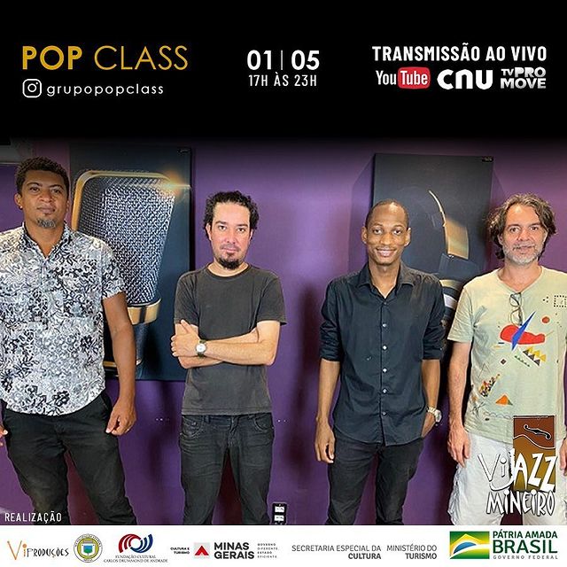 O grupo PopClass atua há mais de 10 anos no cenário musical de Viçosa e região, realizando casamentos, aniversários, festivais e eventos corporativos. “Para o ViJazz 2021 trazemos um repertório eclético, passando pelo tango, MPB, choro jazz e pop internacional”. Respeitando a tradição da música instrumental, o PopClass apresenta arranjos próprios para temas, sempre enfatizando o caráter melódico de cada instrumento.