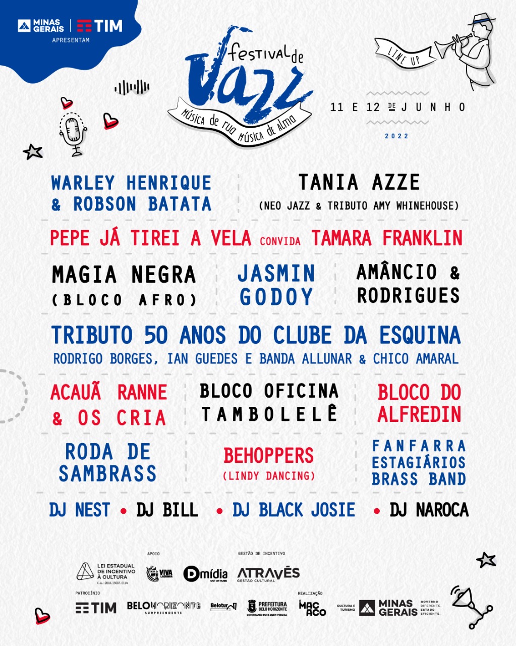 Nos dias 11 e 12 de junho, o Mirante da Lagoinha (na rua Diamantina) recebe o Festival de Jazz - Música de Rua, Música de Alma.