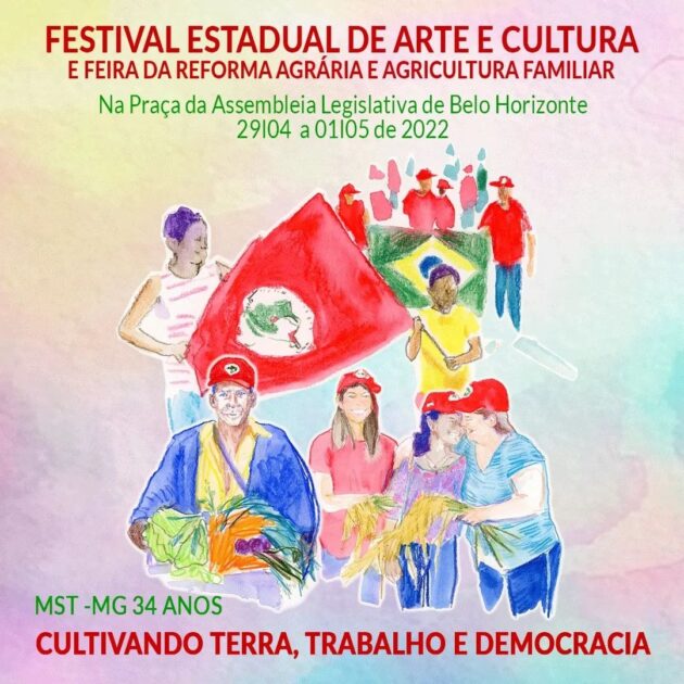 Entre os dias 29 de abril e 1 de maio, acontece em Belo Horizonte o já tradicional Festival de Arte e Cultura e Feira da Reforma Agrária e Agricultura Familiar, que em sua terceira edição, com produção saudável, arte e cultura, trazendo a feira com o lema: “Reforma agrária popular: cultivando terra, arte e democracia”.