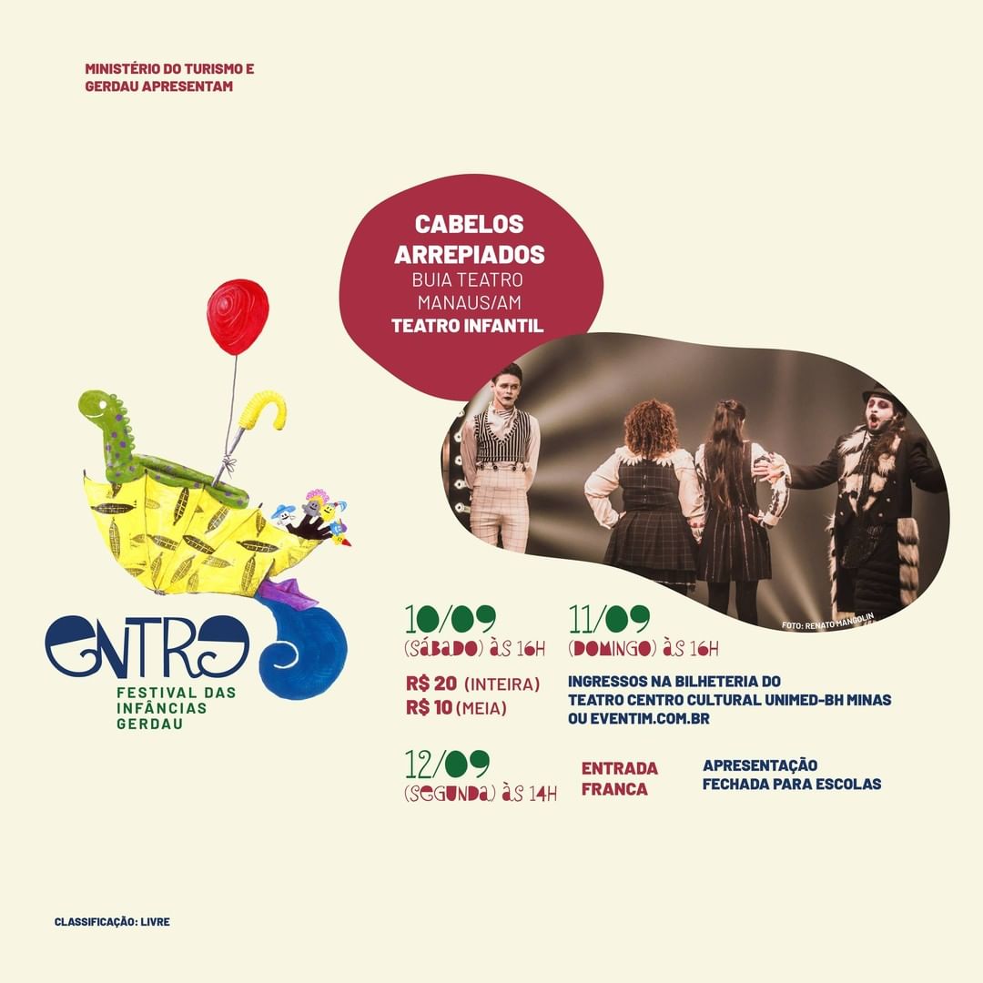 O Centro Cultural Unimed-BH Minas apresenta, com o patrocínio máster da Gerdau, seu primeiro festival de Teatro. O “Entre – Festival das Infâncias Gerdau” tem como objetivo oferecer oficinas e peças teatrais para o público infantil entre setembro e novembro de 2022.
