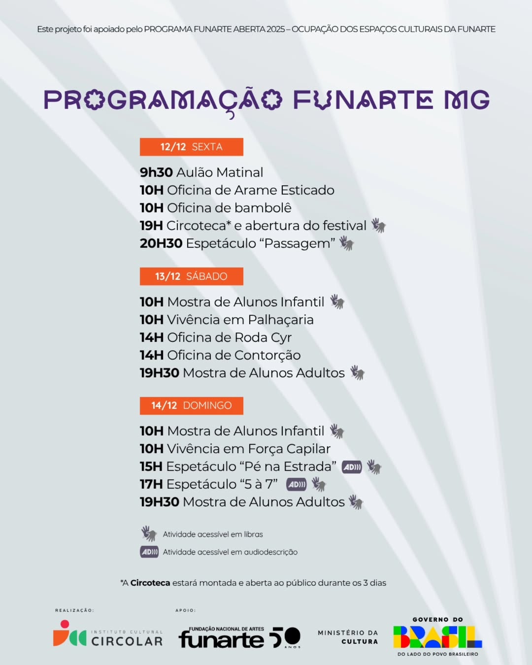 Ao todo serão seis dias repletos de uma programação cultural rica em expressões artísticas circenses, proporcionando acesso ao público em diversas atividades pagas e gratuitas, como oficinas, exposições e espetáculos, utilizando de nossa maior paixão: o circo!