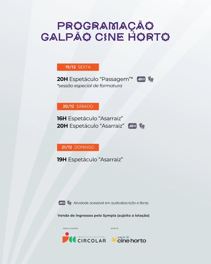 20h - Espetáculo "Passagem" (sessão especial de formatura, acessível com libras e audiodescrição)