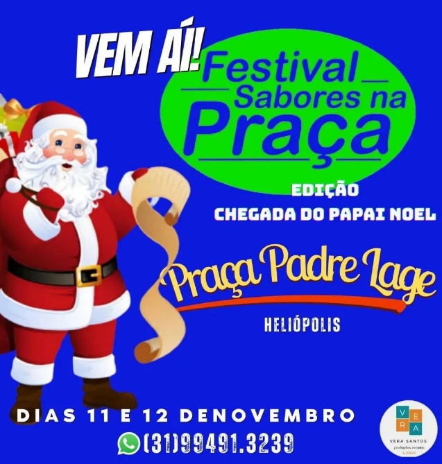 Festival de sabores está chegando!A edição especial "Natal na Praça" vai acontecer nos dias 11 e 12 de novembro.No dia 12/11, o "Papai Noel" vai estar presente levando a alegria e o espírito natalino para todos!
