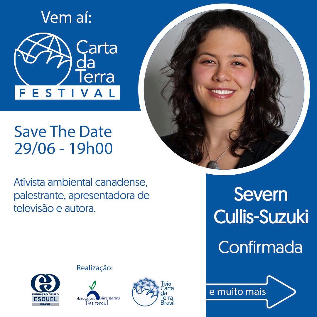Vem celebrar conosco os 20 anos da Carta da Terra! O Festival Internacional Carta da Terra celebra o importante documento que toca mentes e corações para uma sociedade global justa, sustentável e pacífica. O evento virtual reunirá grandes nomes da arte, espiritualidade e do ativismo socioambiental como: Caetano Veloso, Gilberto Gil, Arnaldo Antunes, Fábio Porchat, Marcos Palmeira, Monja Coen estão entre os confirmados. Não Percam! Fica em casa e fique ligado para curtir o festival!
