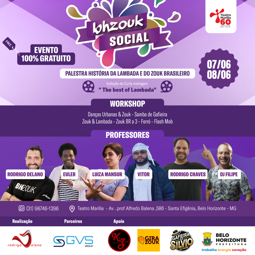 Por isso, desejamos realizar novamente a etapa gratuita do evento, chamada BH Zouk Social, oferecendo vivências Projeto BH Zouk Social 2025 de dança, inclusão e formação de público.