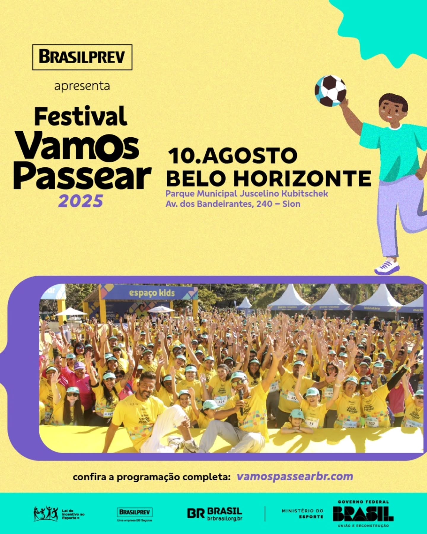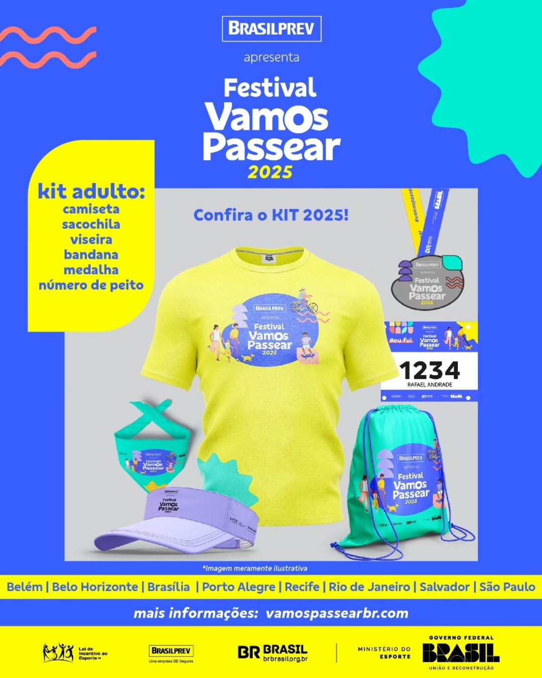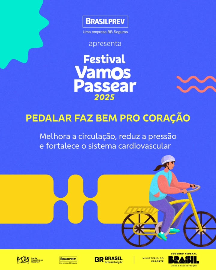 O Festival Vamos Passear 2025, apresentado pela Brasilprev, convida você e toda a sua família, incluindo o seu pet, para uma manhã vibrante de esporte, lazer e bem-estar em 8 cidades incríveis! Pedale, caminhe (com seu amigo de quatro patas!) e veja a alegria dos pequenos na corrida kids (a partir de 4 anos).