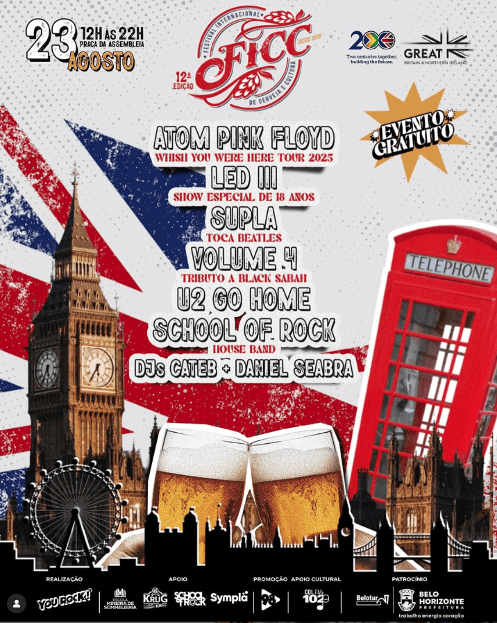 Dia 23 de agosto na Praça da Assembleia, shows com ATOM PINK FLOYD (maior tributo ao PINK FLOYD do Brasil), Led III show especial de 18 anos, Supla tocando Beatles, Volume 4 tributo a Black Sabah e muito mais, espaço kids, praça gastronômica, evento Pet Friedly e mais de 80 rótulos de cervejas diferentes.
