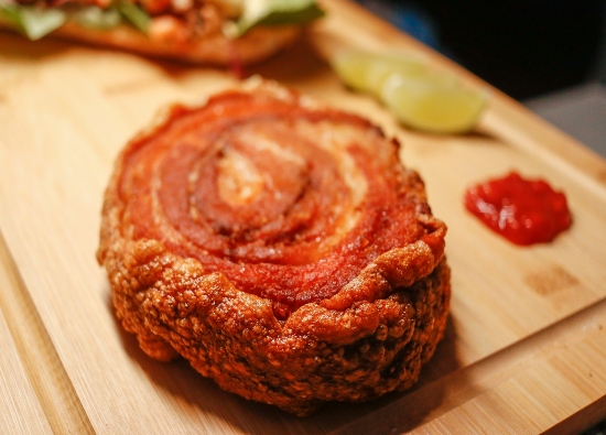 A principal receita do evento é o torresmo de rolo, uma panceta enrolada no formato de rocambole, defumada por horas em lenha frutífera e servida crocante, à pururuca.