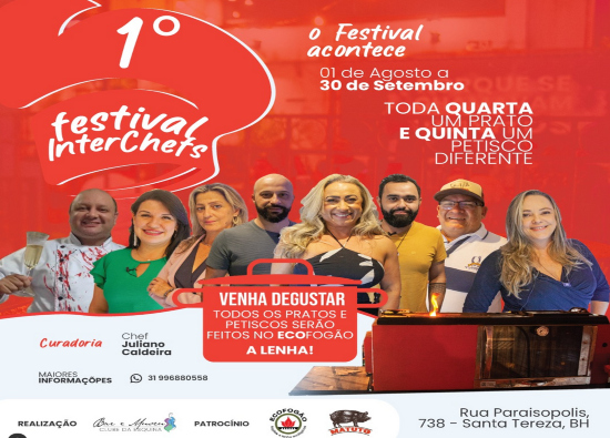 O preparo será ao vivo e realizado no Ecofogão, um fogão a lenha ecológico desenvolvido e fabricado no Brasil. “A primeira edição do Festival Interchefs vai celebrar nossa gastronomia com pratos inéditos preparados a partir de ingredientes típicos em Minas.