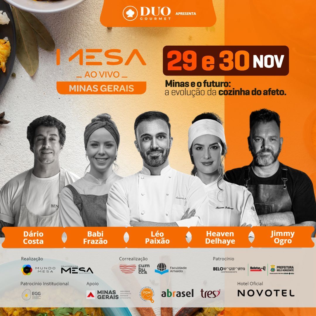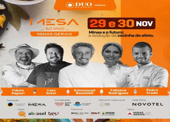 Nos dias 29 e 30 de novembro, Belo Horizonte recebe a 4ª edição do Mesa Ao Vivo Minas Gerais, evento gastronômico que reúne os principais chefs e especialistas em aulas-show, palestras e degustações.