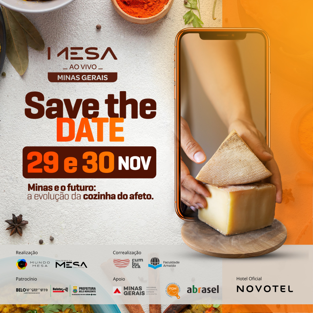 Save The Date MESA ao Vivo Minas Gerais 2023 Tema: Minas e o futuro, a evolução da cozinha de afeto.