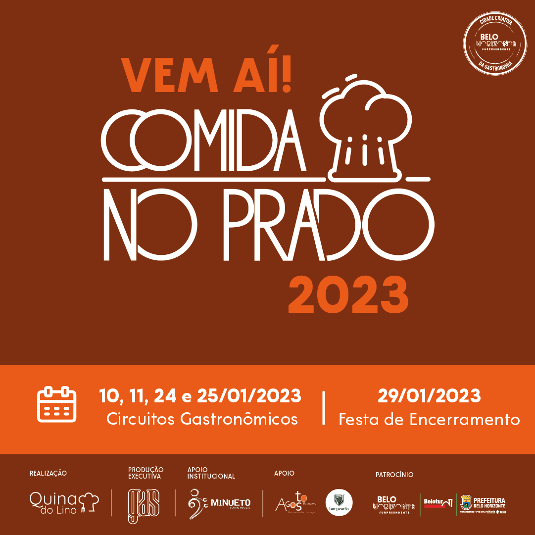 Idealizado pela Quina do Lino, do chef Lino Ramos, o Comida no Prado já teve uma edição virtual, mas com a reabertura da cidade, chega a 2023 para destacar os principais pontos para se comer e beber bem no Prado!