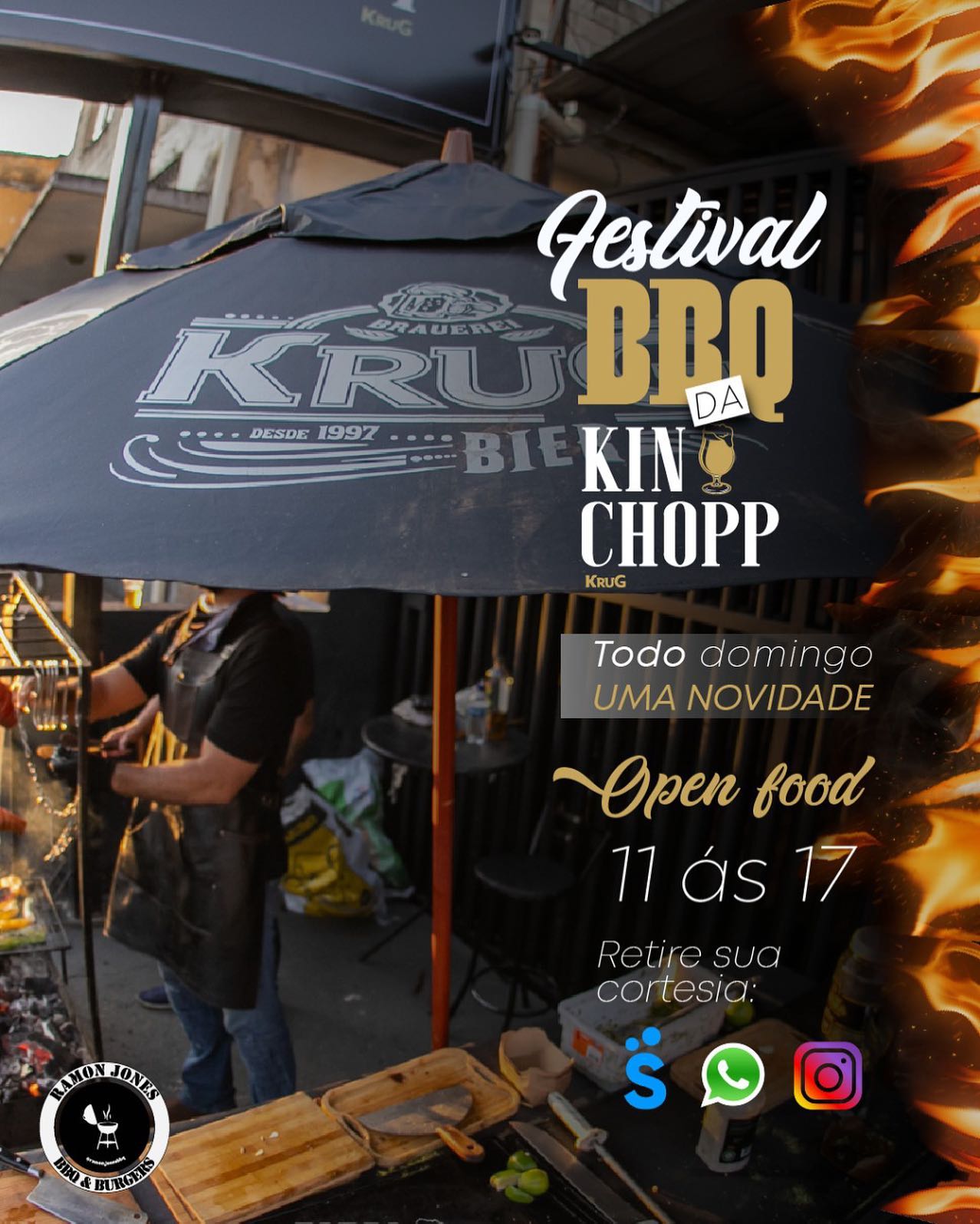 O Festival gastronômico Kin Chopps - BBQ chega ao nosso espaço para unir os loucos por churrasco em um dia de experiência gastronômica com o melhor assador da praça, RAMON CARDOSO (@ramon.jonesbbq) e muita energia regada a muita música boa para você curtir.