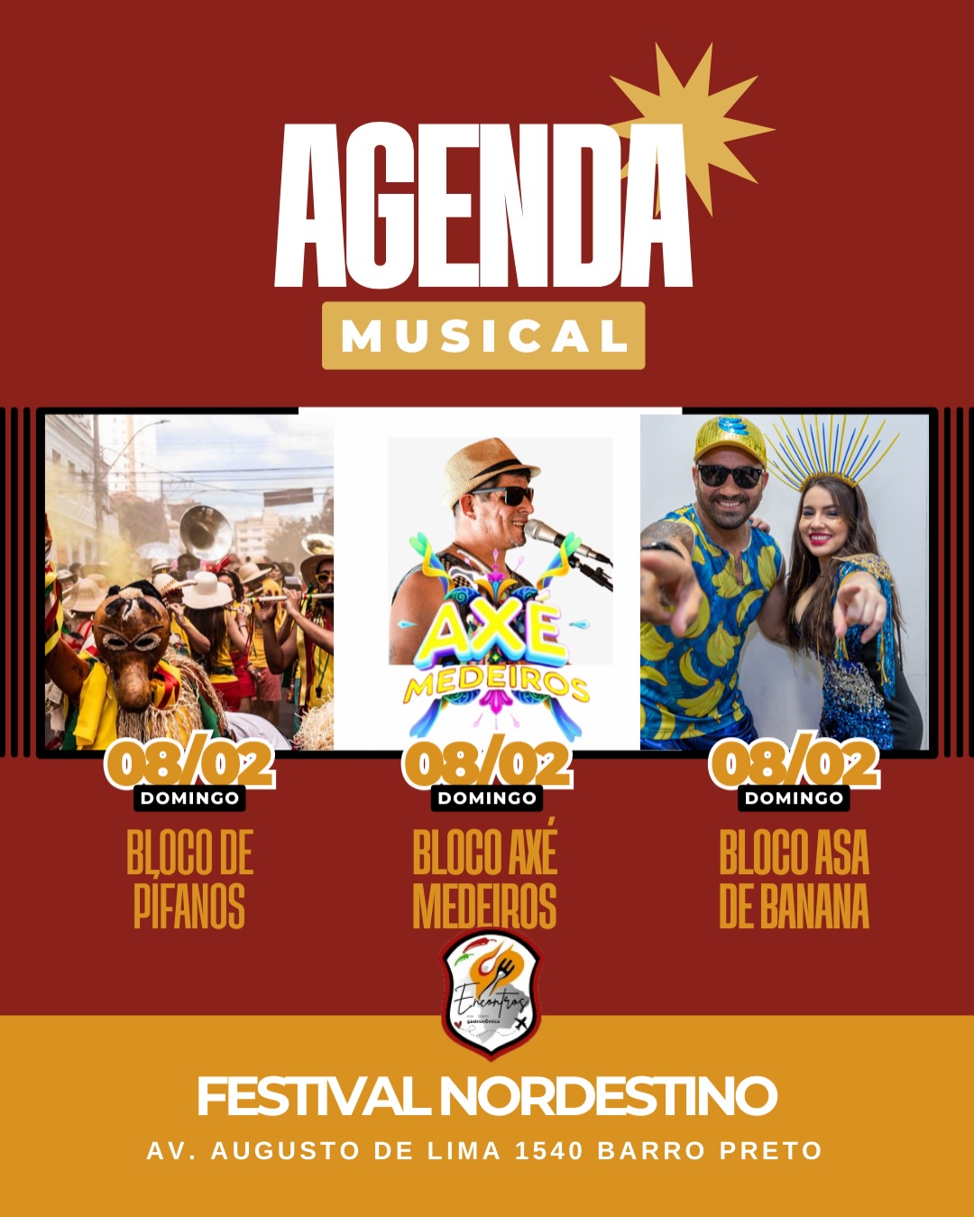 E enquanto o som rola solto, você aproveita uma verdadeira experiência gastronômica pelo Nordeste, com pratos típicos, sabores marcantes e comida que abraça!