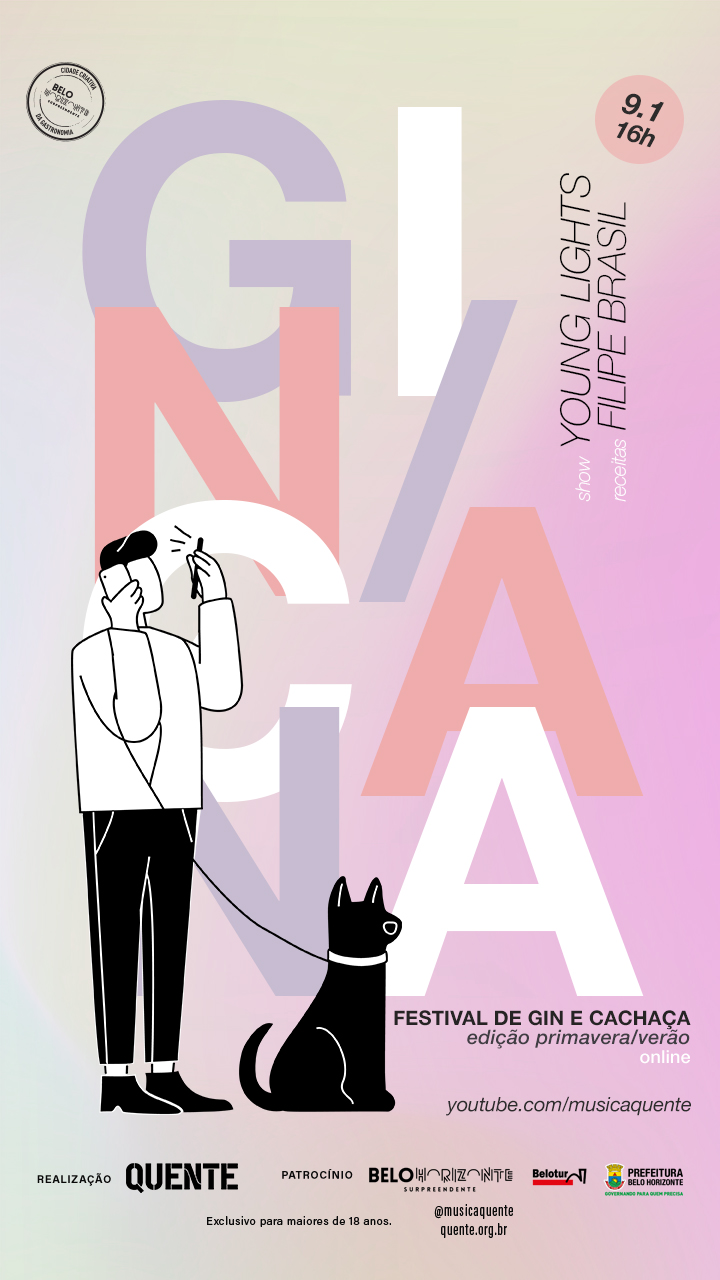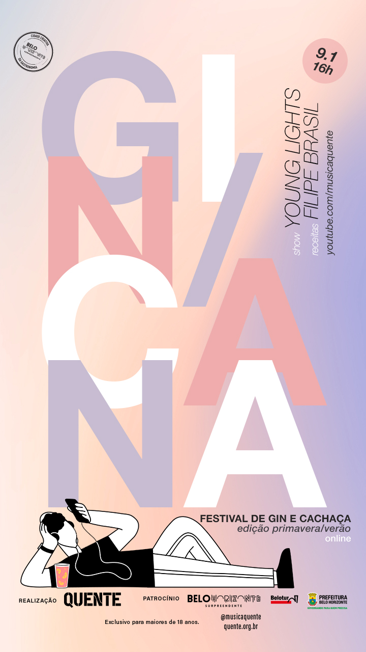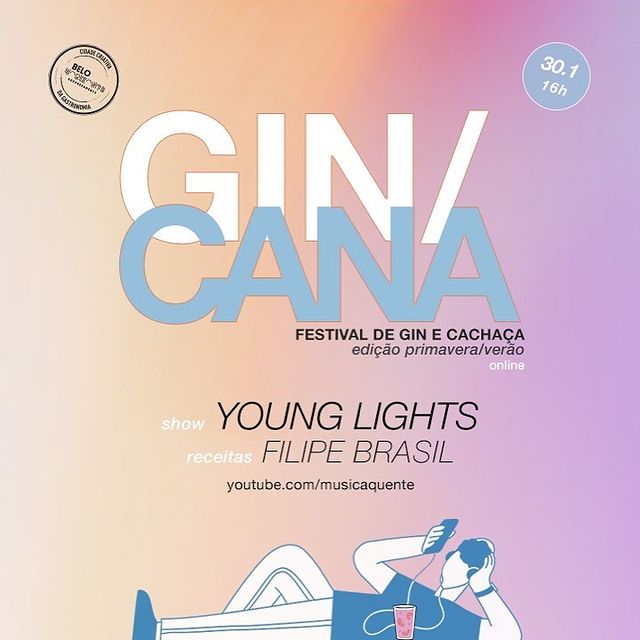 No fim deste mês vai ao ar mais uma edição online do 𝗴𝗶𝗻/𝗰𝗮𝗻𝗮, o primeiro festival dedicado ao gin e cachaça de Minas. Nessa edição, além de continuar utilizando e divulgando pequenas marcas de BH, experimentamos um formato diferente e gravamos um programa com participação do público (via vídeochamada) e um show exclusivo da Young Lights (na única apresentação feita pela banda em 2020). Os drinks ficaram por conta do Filipe Brasil e a apresentação é do David Maurity. O patrocínio é da Belotur. Dia 30 de janeiro, sábado, a partir das 16h no nosso canal no YouTube.