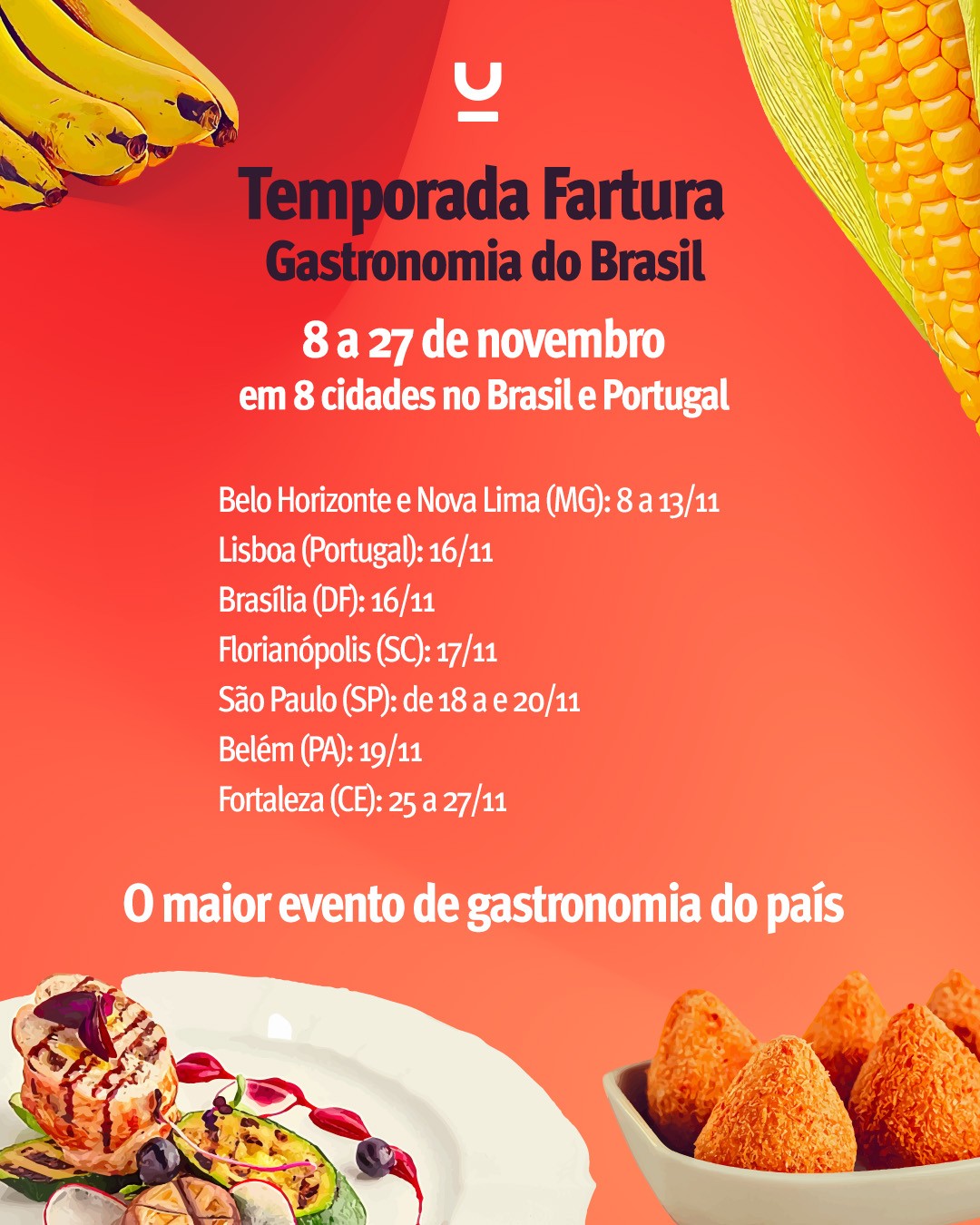O projeto Fartura – Gastronomia do Brasil apresenta, entre os dias 8 e 27 de novembro de 2022, a Temporada Fartura, com ações e eventos em todas as regiões do país e em Portugal.